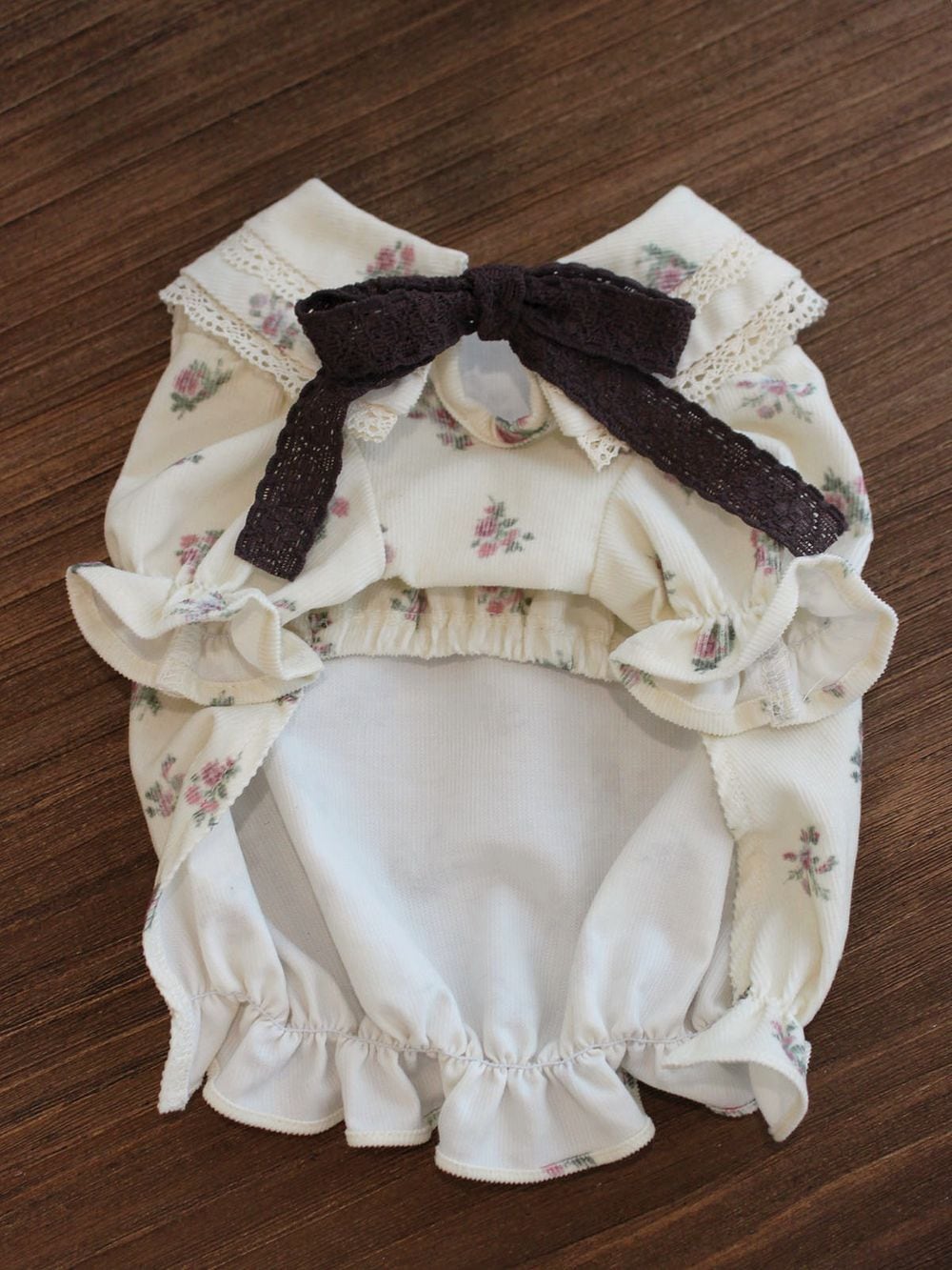 腕回りと胸回りにはゴムが入っており、リボンも伸縮性のある素材を使用しております。