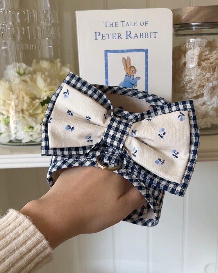 ネイビーのギンガムチェック×ビッグリボンの組み合わせがラブリーな